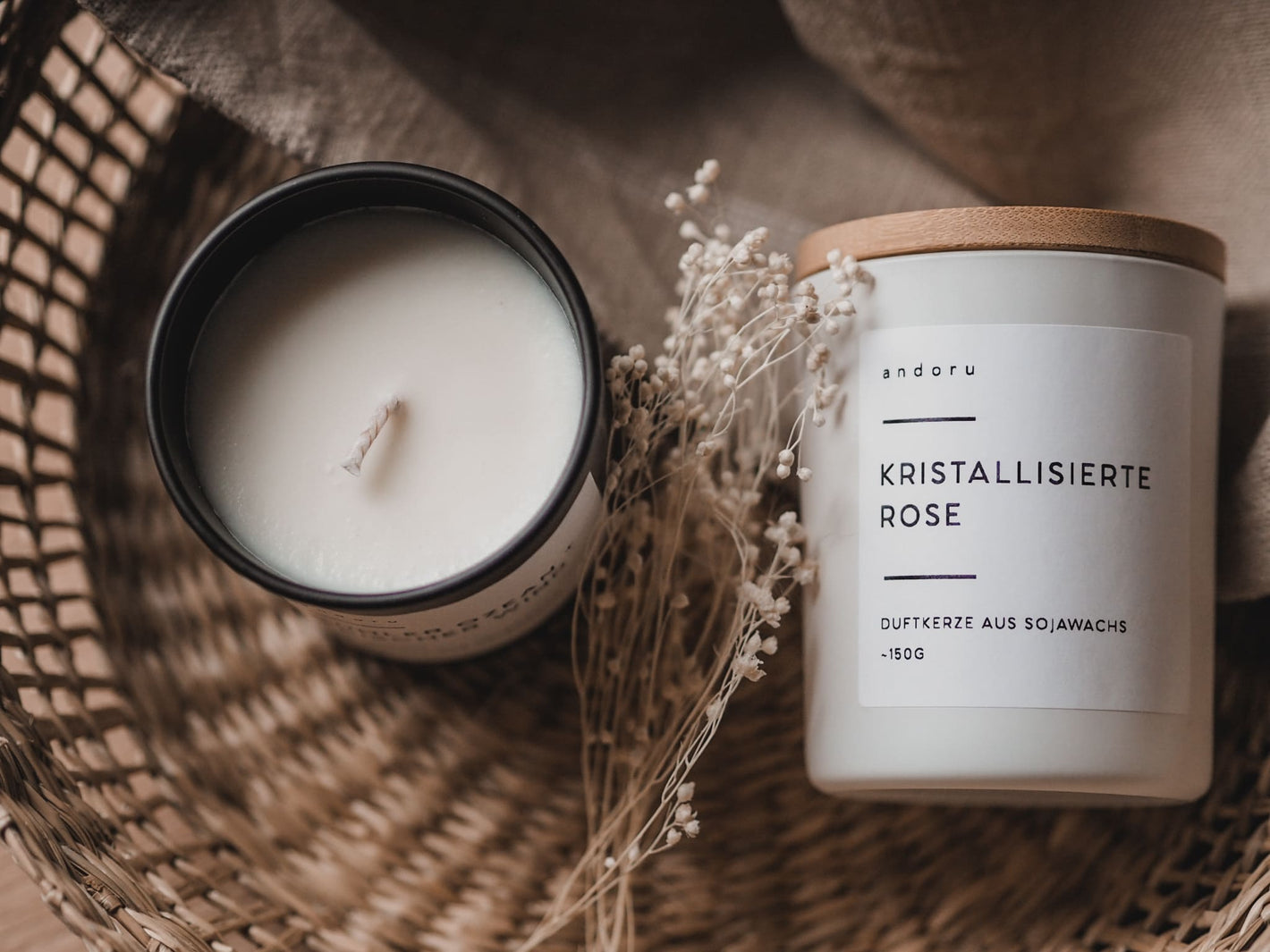 Mit andoru erlebst du Duftkerzen im Glas mit Deckel, die ein sanftes bis sehr intensives Dufterlebnis bieten. Dies erschafft eine ganz besondere Wohlfühl Atmosphäre, die dein Zuhause in eine duftende Oase verwandelt.